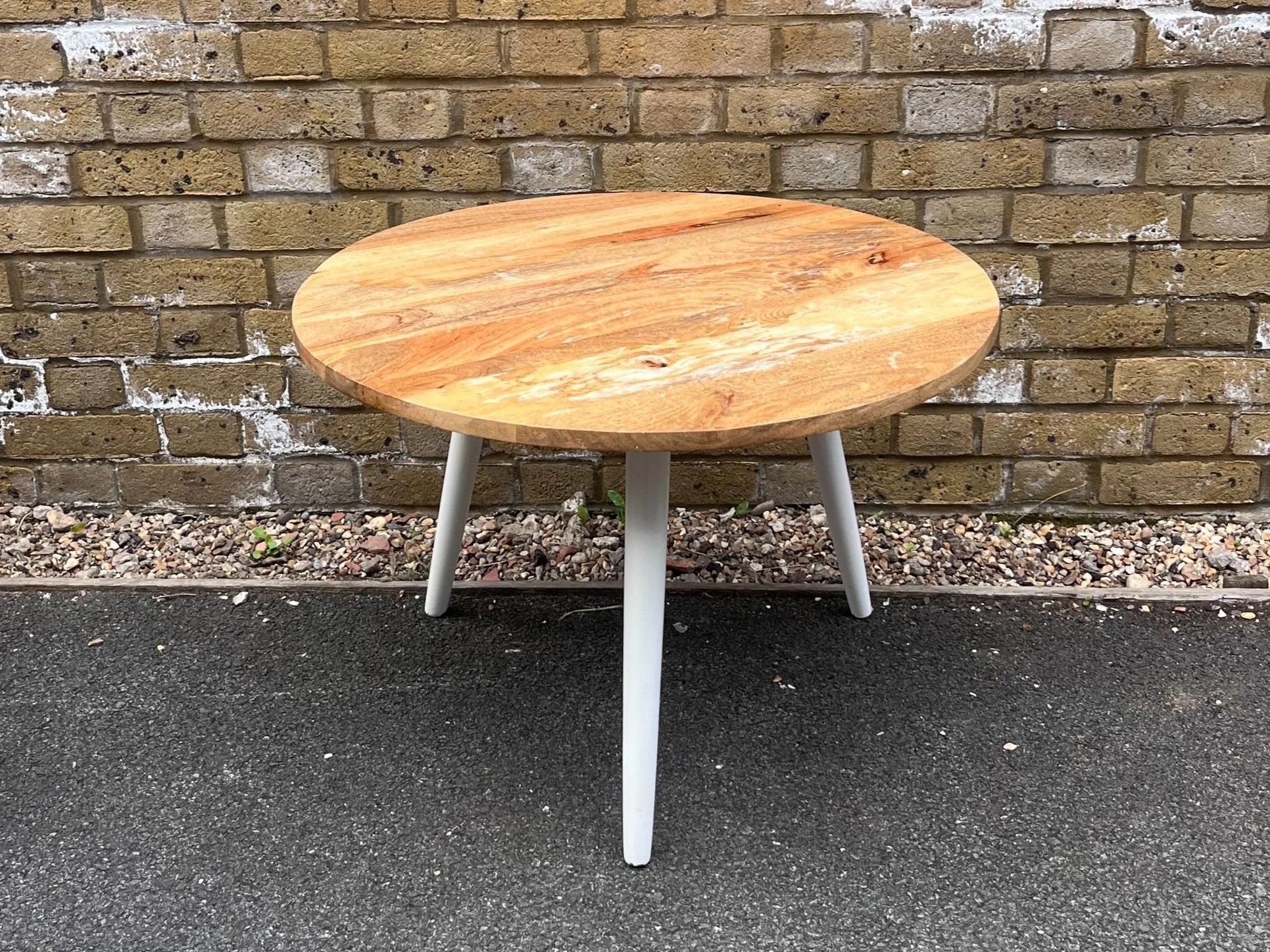 A great little circular table that could serve many purposes - side table, coffee table, the seat for a big juicy plant! The top features the most beautiful wood grain that should be kept on display - at least some of it anyway!